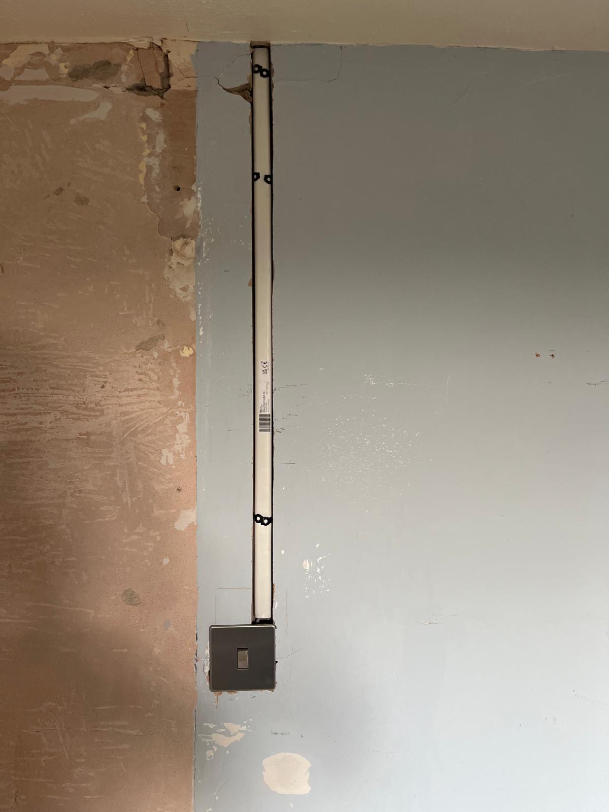 This customer wanted to replace their existing pullcord light switch with a standard wall mounted switch. We removed the old switch and wired in a new one at the customers preferred location.
